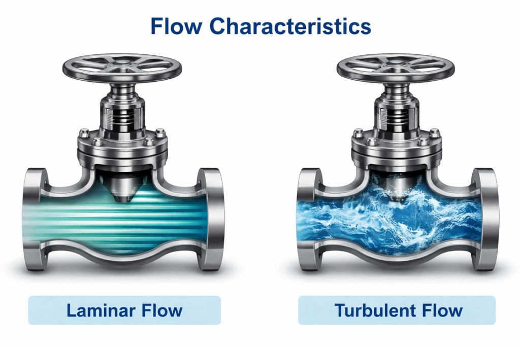 Laminar vs. turbulent flow influences valve design.